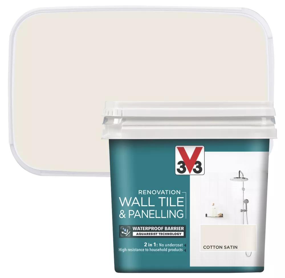 V33 Satin Cotton Off-White Acrylic Wall Tile & Panelling Paint 750ml
