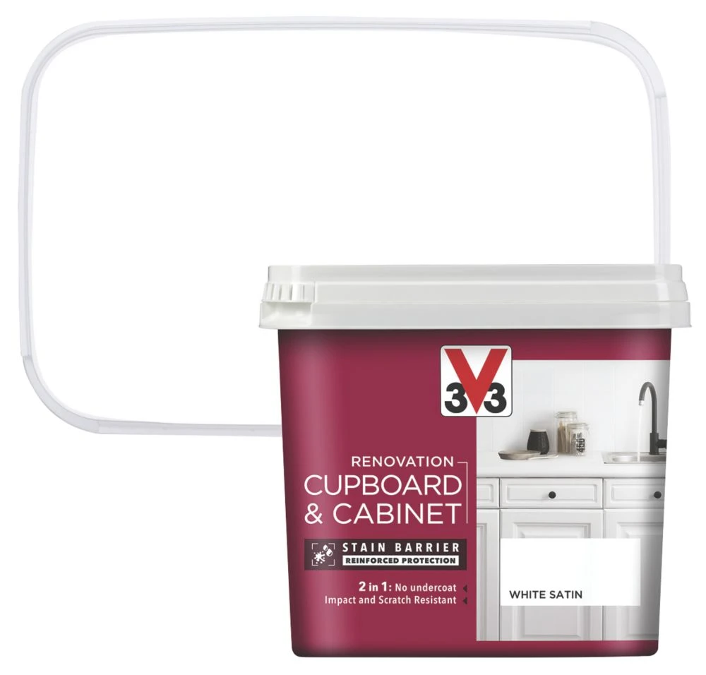 V33 Satin White Trim Cabinet Paint 750ml